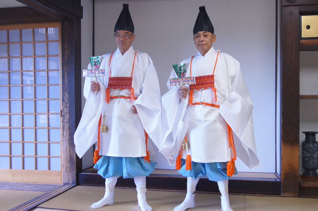 秋晴れに恵まれた2015年9月24日(月)、斎館にて「弊立祭」が行われ、今年も手向集落から二人の松聖が任命されました。